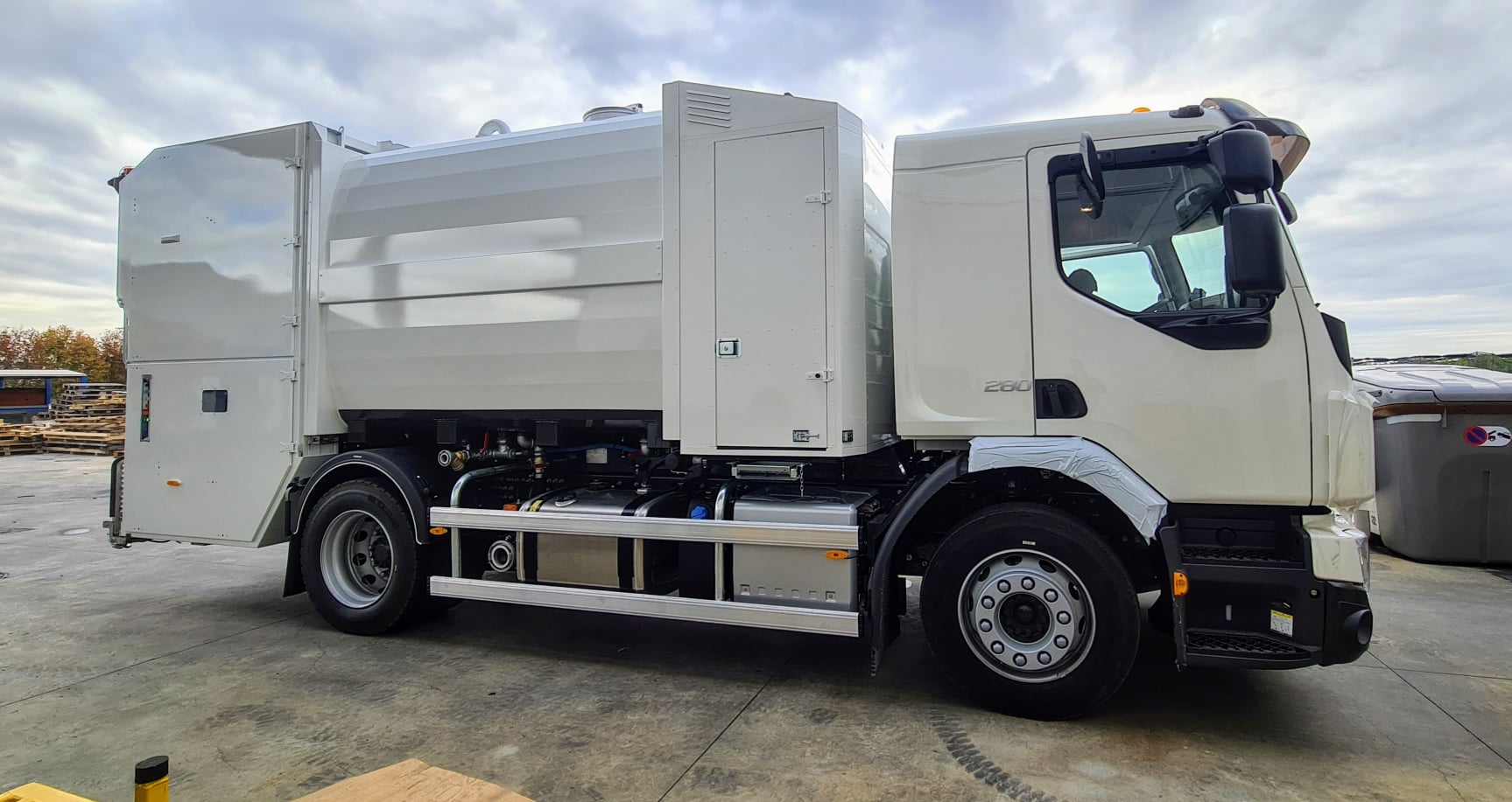 10. desember 2021 fengum við loks afhentan glænýjan tunnuþvottabíl frá Ítalíu. Bifreiðin er 18 tonna Volvo bifreið með tunnuþvottavél af fullkomnustu gerð. Sorpílát frá 140 lítrum að 1.100 lítrum fá algjöran lúxusþvott.